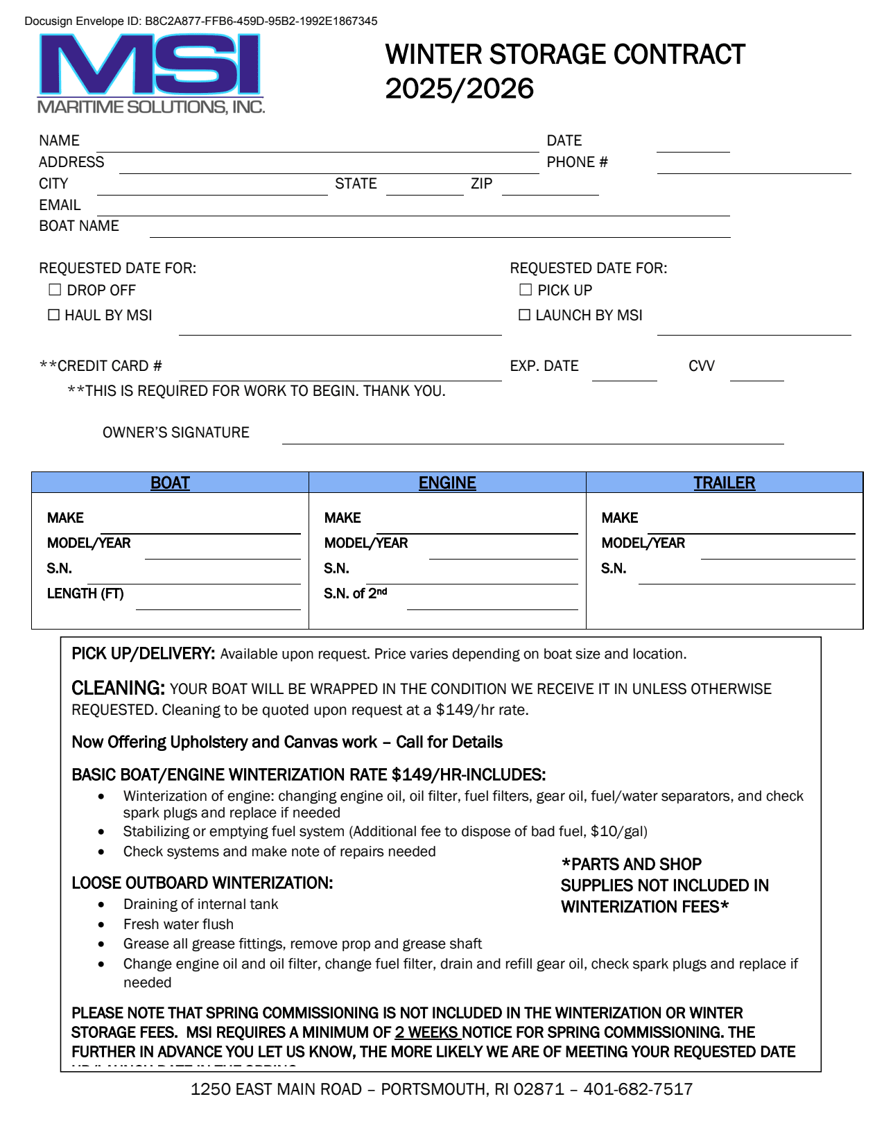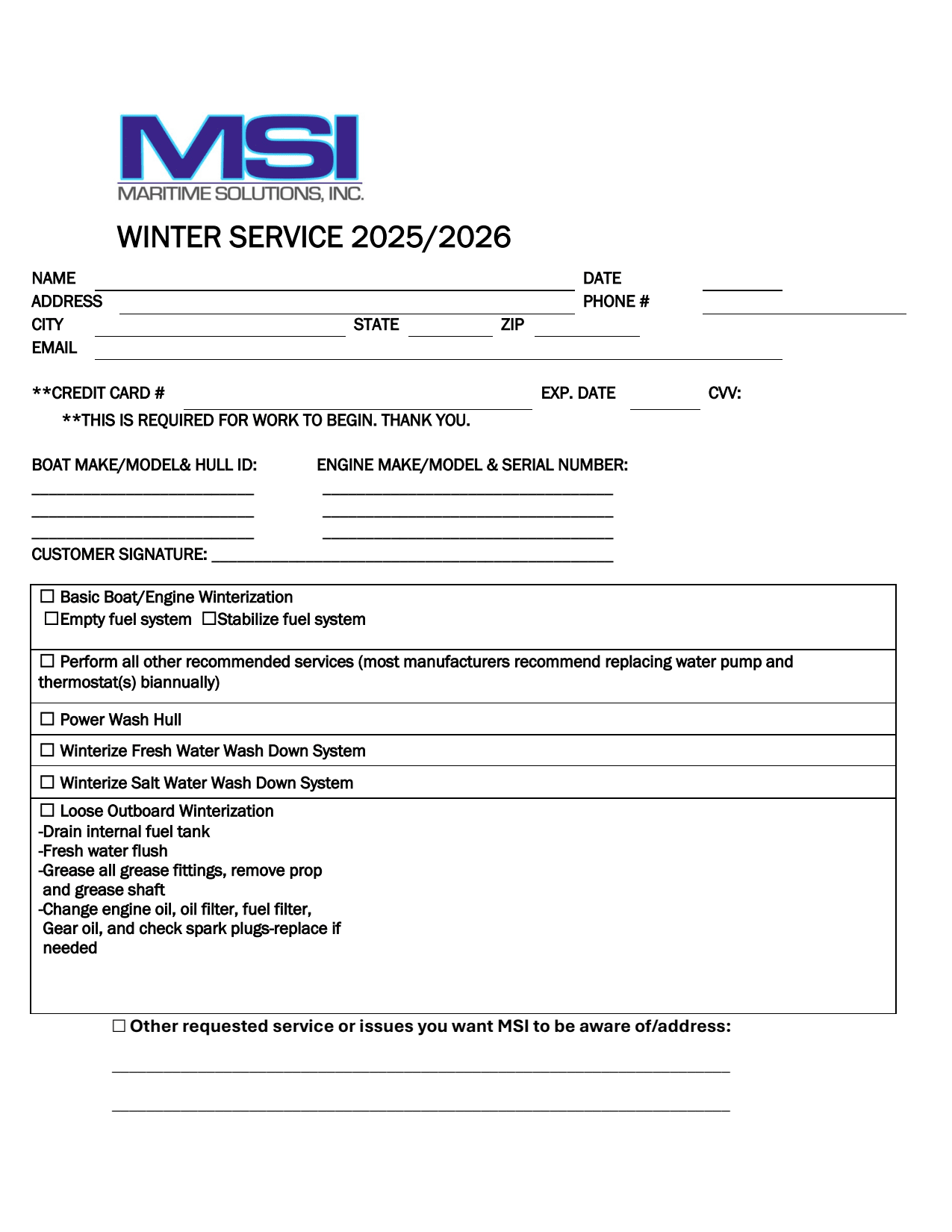 We kindly ask that customers call, text, or email parts orders in advance. We will contact you when your order is ready for pickup. Walk-in part orders may be asked to wait an hour while the order is prepared. Please try to have part numbers and engine serial numbers when placing parts orders. Call/text: 401-682-7517 Email: parts4msi@gmail.com. Thank you.